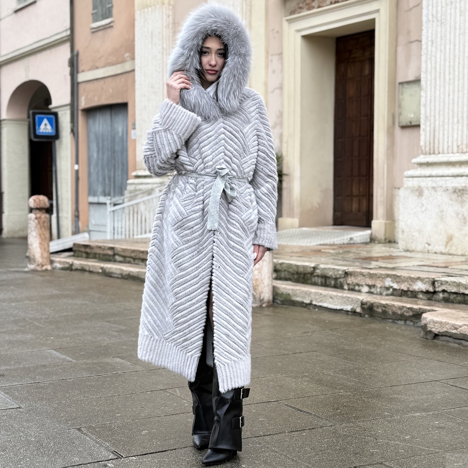 120 CM, MINK+REX COAT WITH HOOD AND RACCOON EDGE