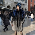 95 CM, CAPPOTTO IN VOLPE ARGENTATA, LAVORAZIONE VERTICALE E MANICHE ORIZZONTALI